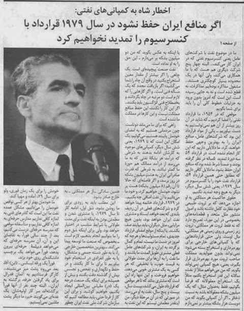 -«در سال ۱۹۷۹[یعنی در سال ۵۷] قرار داد نفت با کنسرسیوم نفت خاتمه پیدا خواهد کرد و شرکت های نفتیِ فعلی در ردیف بلندی خواهند ایستاد و بدون هیچ مزایائی،مثل دیگران برای خرید نفت ایران باید بیایند صف بکشند. در سال ۱۹۷۹[یعنی در سال ۵۷] ما قرارداد نفت خودمان با کنسرسیوم را دیگر به هیچوجه تمدید نخواهیم کرد.»